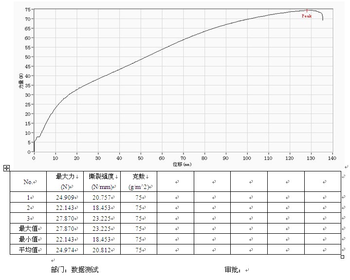 75G无纺布撕破专业试验报告